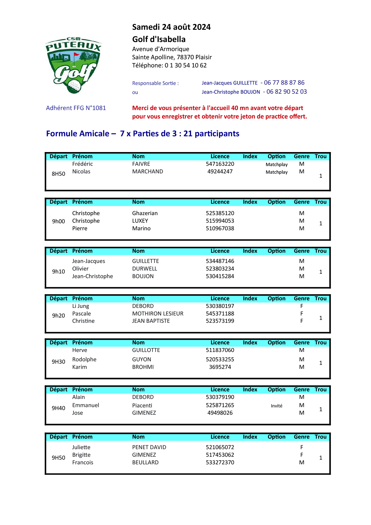 Départs en ligne à partir de 9h00 |